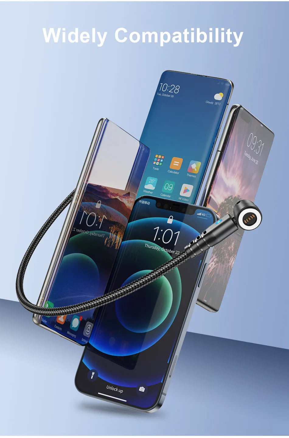 Cable magnético giratorio de carga rápida. Cable tipoC Micro USB, línea de datos 480 Mbps