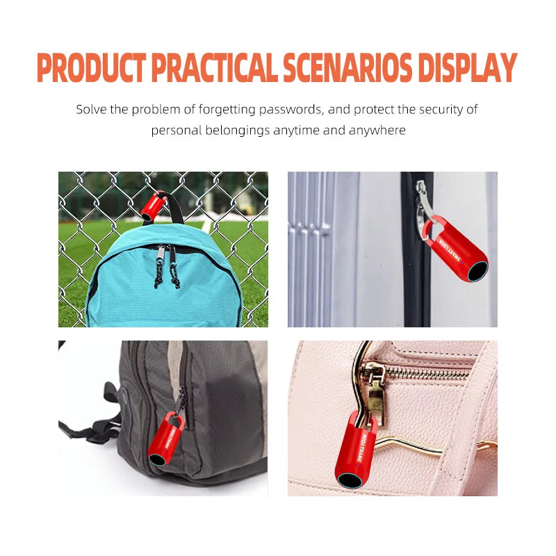 Seguridad portátil y moderna: protege tu mochila, maleta o armario con un candado biométrico resistente y recargable.