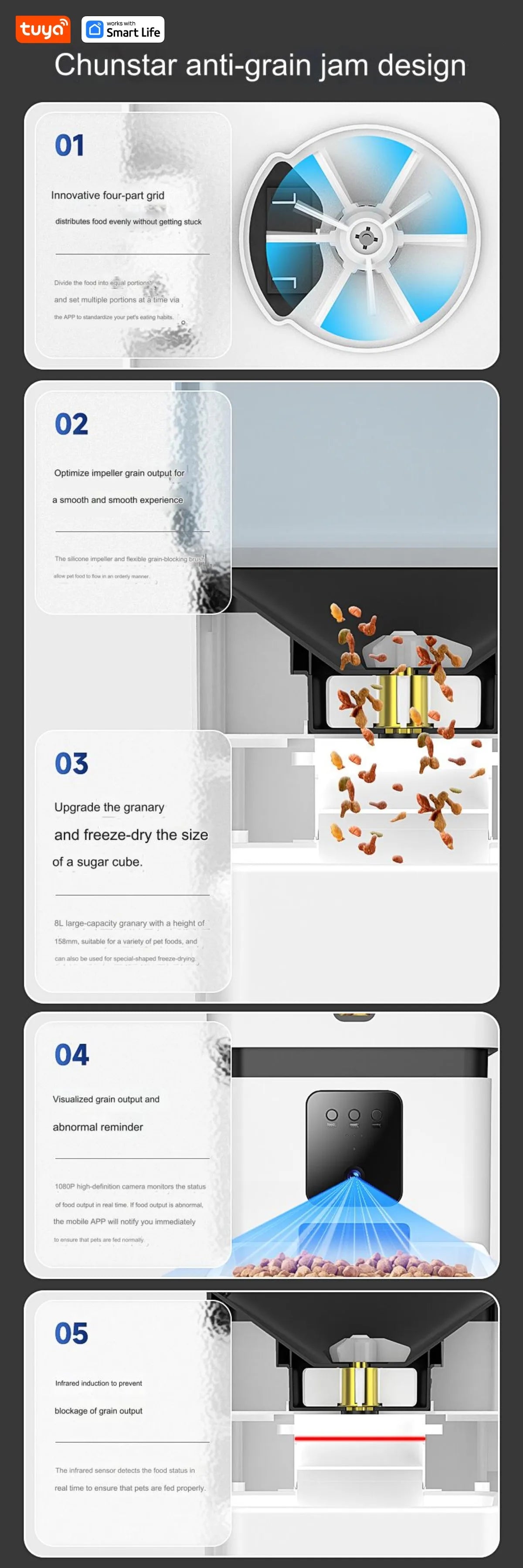 Convierte la hora de la comida en un momento inteligente con este dispensador automático de 8L para mascotas.