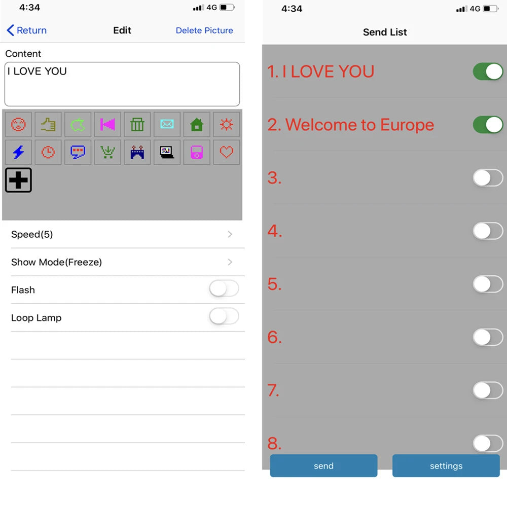 Configura tu propio programa con tu teléfono móvil a través de Bluetooth, en cualquier momento y lugar.Idiomas: chino, inglés, coreano, japonés, árabe, ruso, español, portugués, hebreo, etc.Moderno y atractivo, la mejor opción para ferias, fiestas, conferencias y conciertos.
